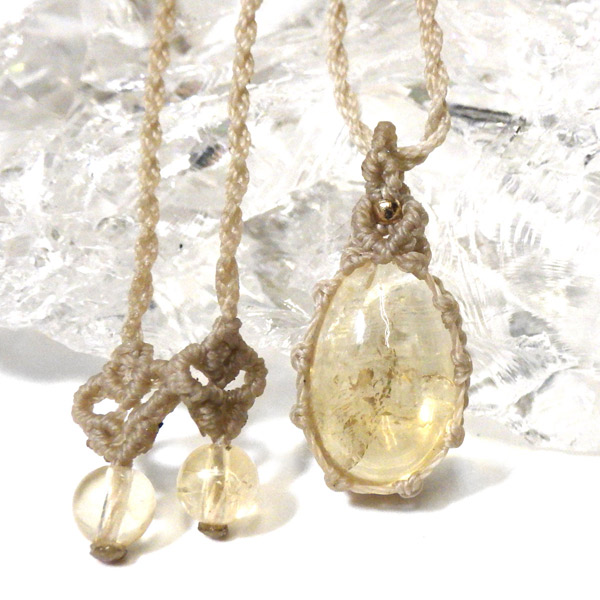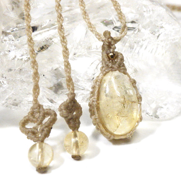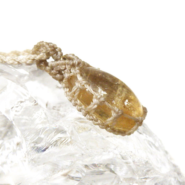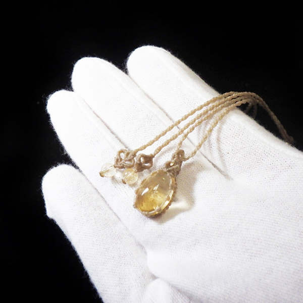 透明感に優れたザンビア産シトリンを使用したマクラメペンダントです。