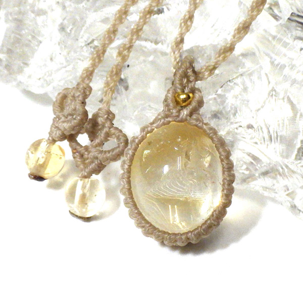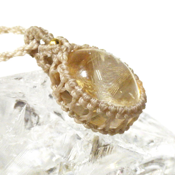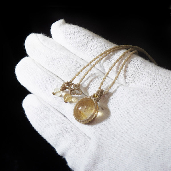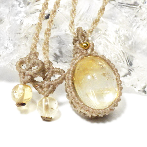 透明感に優れたザンビア産シトリンを使用したマクラメペンダントです。