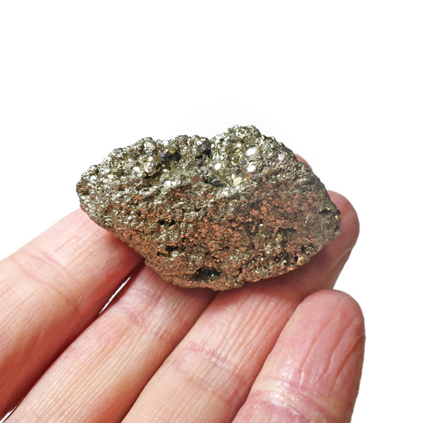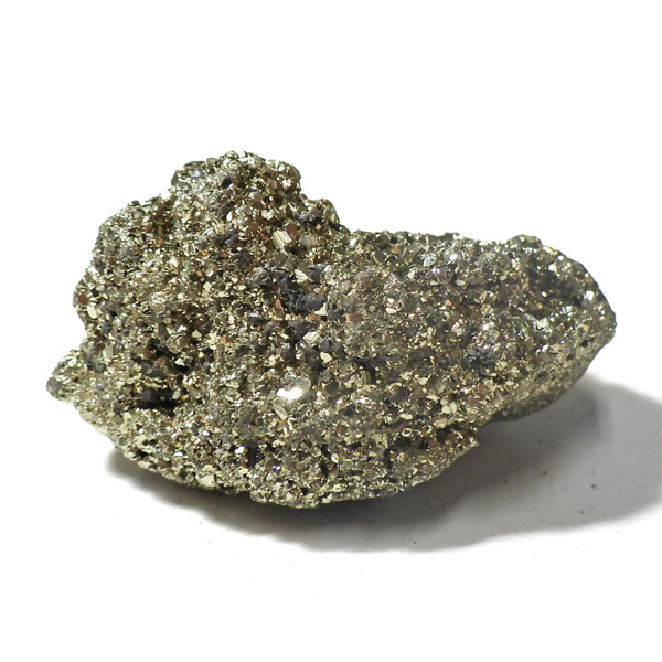 ペルー産のパイライト原石です。コロッとかわいらしいサイズでキラキラが信じられないほどまぶしい原石。パイライトは、火山活動の活発な場所で生成されます。結晶は大変整った六面体や八面体です。金と間違えるほどのゴールドで、硫黄と鉄で構成された鉱物の一種です。