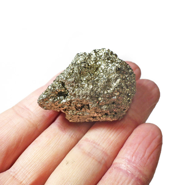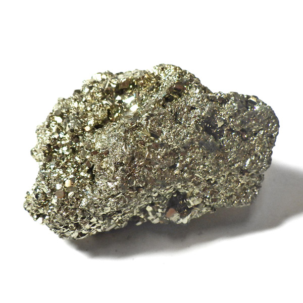 ペルー産のパイライト原石です。コロッとかわいらしいサイズでキラキラが信じられないほどまぶしい原石。パイライトは、火山活動の活発な場所で生成されます。結晶は大変整った六面体や八面体です。金と間違えるほどのゴールドで、硫黄と鉄で構成された鉱物の一種です。