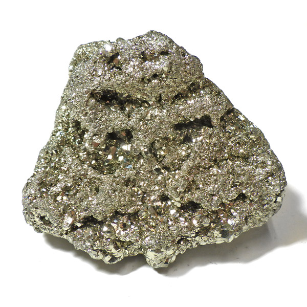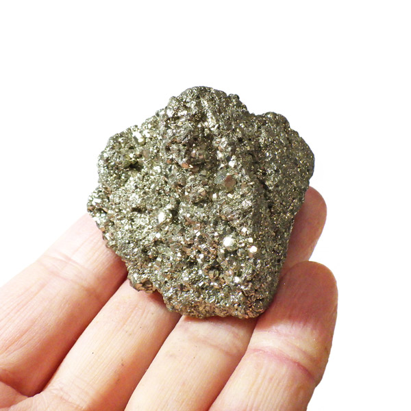 ペルー産のパイライト原石です。コロッとかわいらしいサイズでキラキラが信じられないほどまぶしい原石。パイライトは、火山活動の活発な場所で生成されます。結晶は大変整った六面体や八面体です。金と間違えるほどのゴールドで、硫黄と鉄で構成された鉱物の一種です。