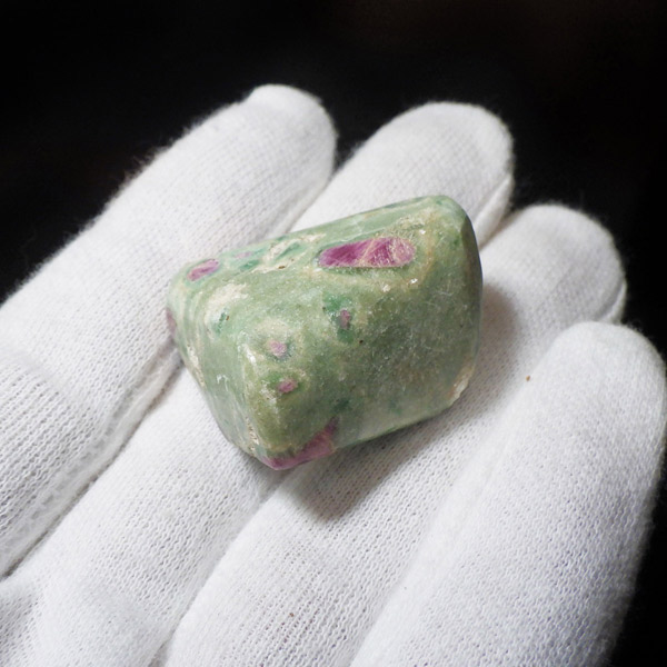 インド産のルビーインフックサイトのタンブルです。 やわらかなグリーンのフックサイトの中に鮮やかな赤いルビーが入り込み、自然が描いたアートのような美しい模様をお楽しみいただけます。ひとつひとつ表情が異なり、唯一無二の魅力を持つ天然石です。グリーン、レッド、クリーム色のカラーバランスが鮮やかで魅力的です。