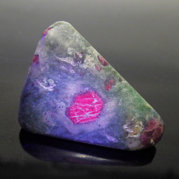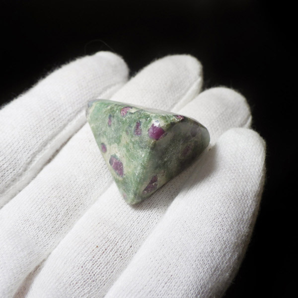 インド産のルビーインフックサイトのタンブルです。 やわらかなグリーンのフックサイトの中に鮮やかな赤いルビーが入り込み、自然が描いたアートのような美しい模様をお楽しみいただけます。ひとつひとつ表情が異なり、唯一無二の魅力を持つ天然石です。グリーン、レッド、クリーム色のカラーバランスが鮮やかで魅力的です。