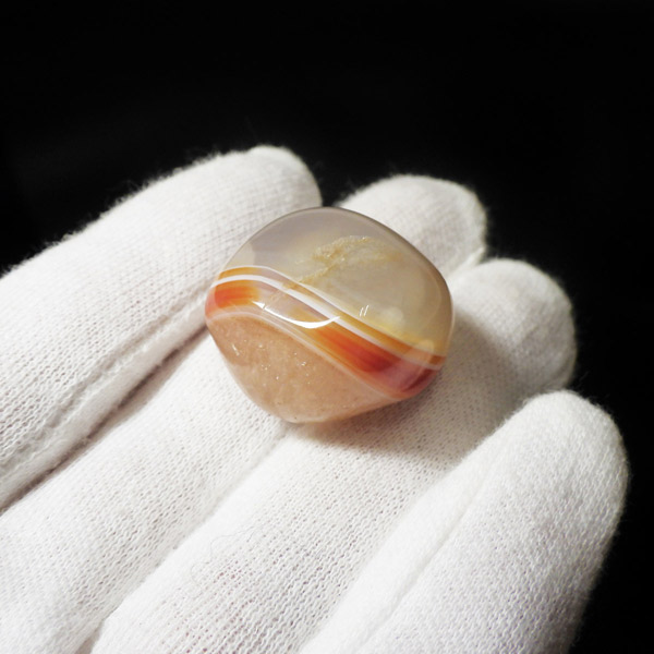 レッドアゲートは丸く研磨すると縞模様が眼のように浮かびあがるという意味合いから、「赤天眼石」と呼ばれることもあります。サードオニキスのこの特徴的な縞模様は、天眼石と同じく人や物事を見極める意味合いもあります。また、魔除けとして、悪意や嫉妬など、他人から悪意をもたれたときにも力を発揮してくれるといわれています。更に、人間関係全般に幸運をもたらし、恋人や夫婦などパートナーシップを安定させ、よい友情を引き寄せる効果があるといわれています。