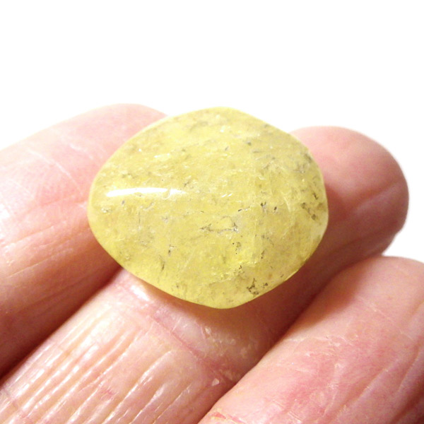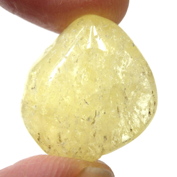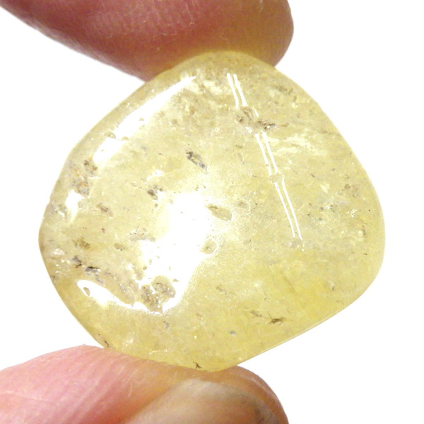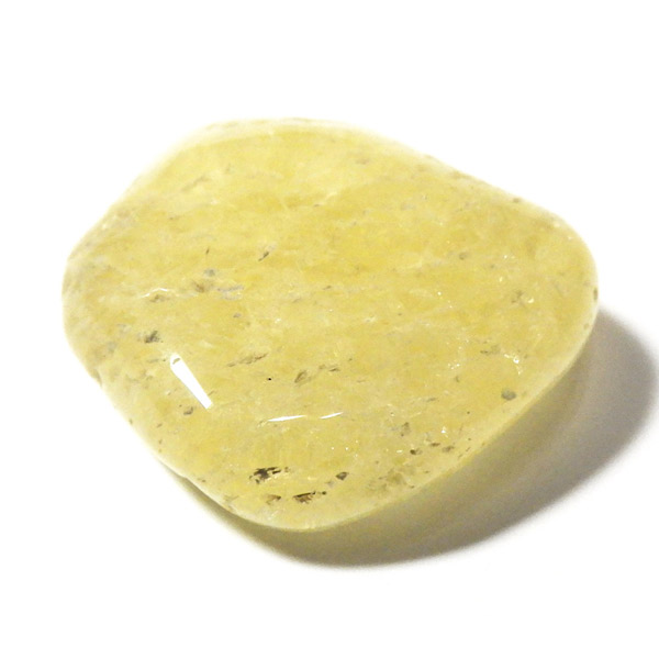 タンザニア産のゴールデンダンビュライト、タンブルです。ダンビュライトと言えば、透明度の高い結晶や、薄いピンク色の結晶がよく知られています。 光の反射が強く、屈折率が高いことから、良質な原石をカットすると水晶やトパーズよりも透明で澄んでいて、かつてダイアモンドの代用品として利用されていたこともあります。ところが、タンザニア産のダンビュライトは 明るいイエローの発色で、塊状で産するのが特徴です。