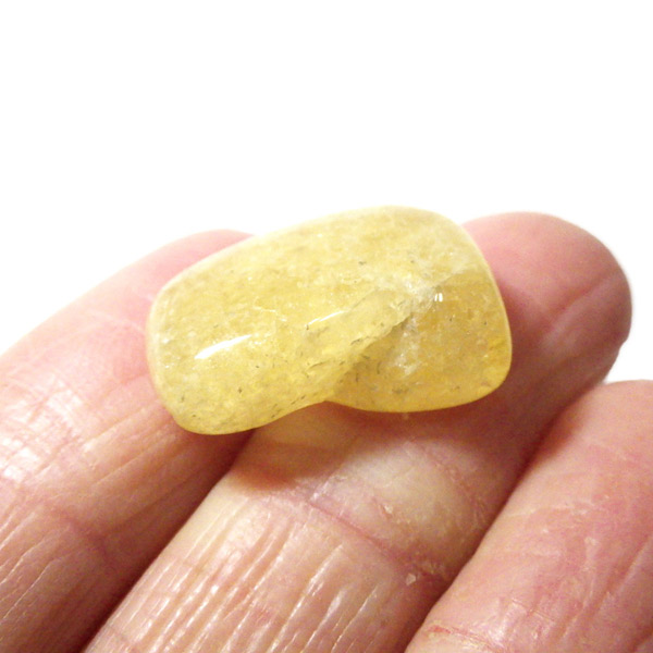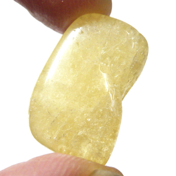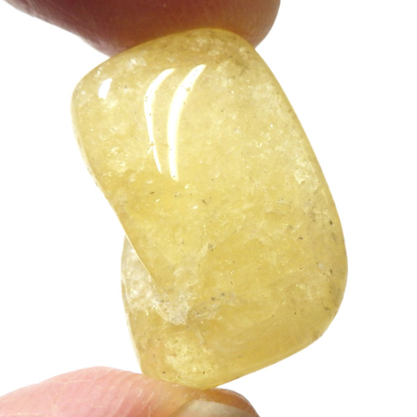 タンザニア産のゴールデンダンビュライト、タンブルです。ダンビュライトと言えば、透明度の高い結晶や、薄いピンク色の結晶がよく知られています。 光の反射が強く、屈折率が高いことから、良質な原石をカットすると水晶やトパーズよりも透明で澄んでいて、かつてダイアモンドの代用品として利用されていたこともあります。ところが、タンザニア産のダンビュライトは 明るいイエローの発色で、塊状で産するのが特徴です。