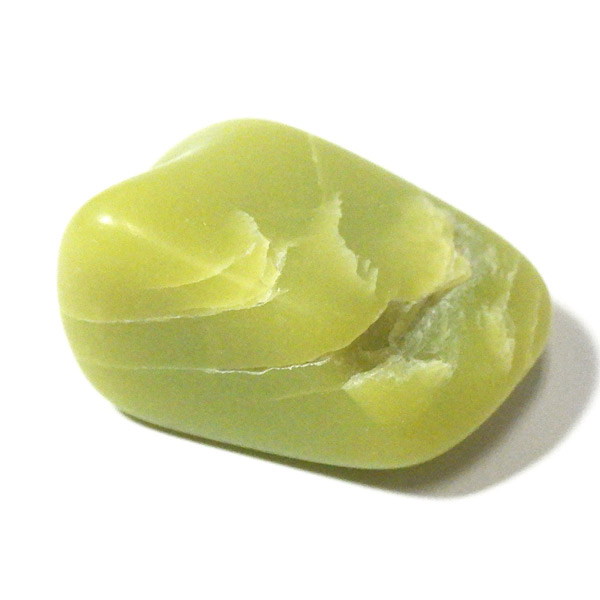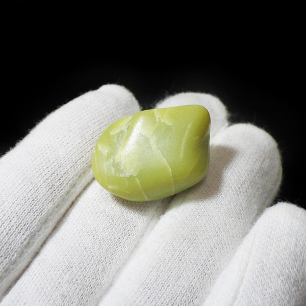 アメリカ・ワシントン州産のワシントンサーペンティン(ヒーラーライト)、タンブルです。 ワシントンサーペンティン(ヒーラーライト)は、明るいライムグリーン色をしており、やわらかな感触があります。パッと見た感じは黄色の印象が強いと思いますが、良く見てみると黄色ではなくもっと複雑で独特の色合いをしていることが分かります。アメリカの北西部で新しく発見されたケイ酸マグネシウムで、マグネサイト鉱脈から、マグネサイトと一緒に発掘されます。