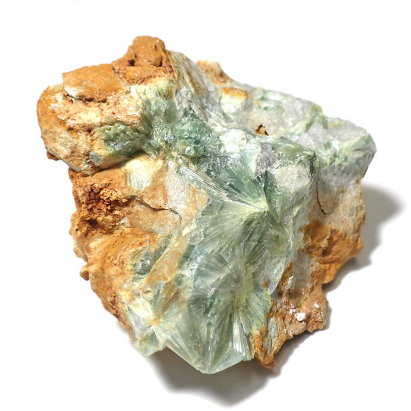 アメリカ・アーカンソー州産のワーべライト原石です。 美しい放射状の結晶形が確認でき、角度を変えて輝く結晶の光沢が美しいです。和名は銀星石、アルミニウムの含水燐酸塩鉱物です。グリーンの発色が良い、大変綺麗な原石になります。