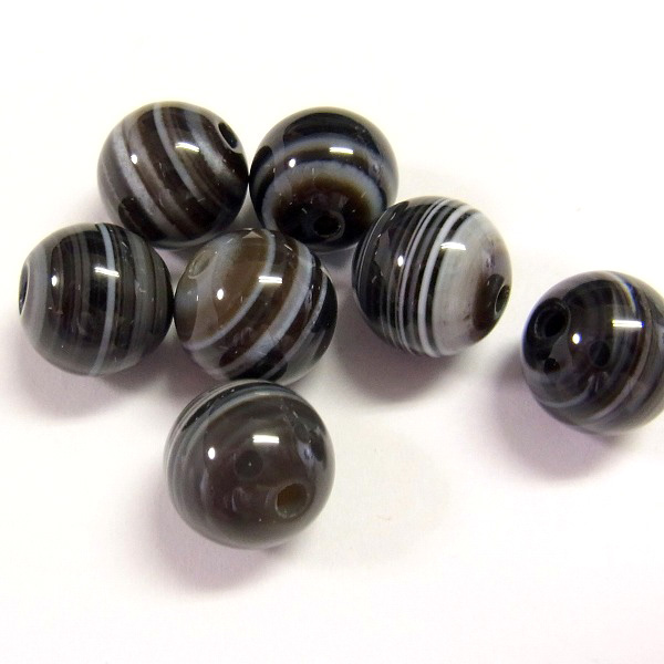 * サードオニキス 和名:縞瑪瑙 *サードオニキス(天眼石)は瑪瑙(めのう:アゲート)の一種で縞模様のあるものをいいます。その縞模様が稀に年輪状になり、眼を持つことがあります。チベットでは地中から掘り出されるのではなく、地面にゴロゴロと落ちているため、「天から降ってきた神の眼 」ということから天眼石という名前がつきました。古くからお守りや魔よけとして用いられてきました。