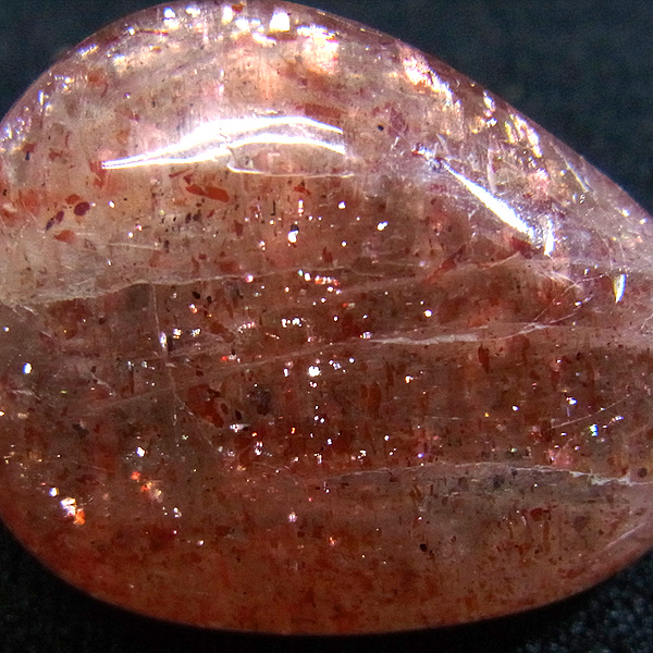 サンストーンと言う名前は鉱物的な性質から名づけられ たものではなく、ムーンストーンの静かな光と対照的 に思えるキラキラした光を持つことから名づけられ た、宝石としての名称です。