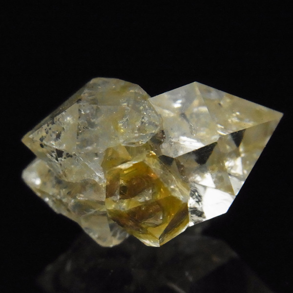 ハーキマーダイヤモンドはアメリカ、ニューヨーク州、ハーキマー地区でしか採掘されないダイヤのようなクリスタル。母岩の穴の中で成長し、ダイヤモンドのような両側の18面体の結晶になります。そして、まるでダイヤモンドのように力強い光沢感と輝きを兼ね備えているのが特長です。