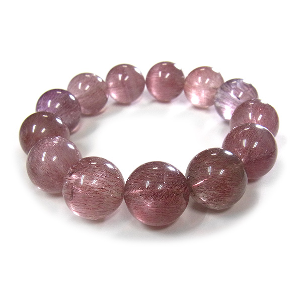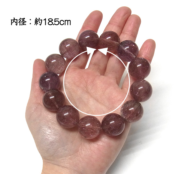 パープルルチルクォーツ ブレスレット 18.5mm玉×13個 内周18.5cm 114g