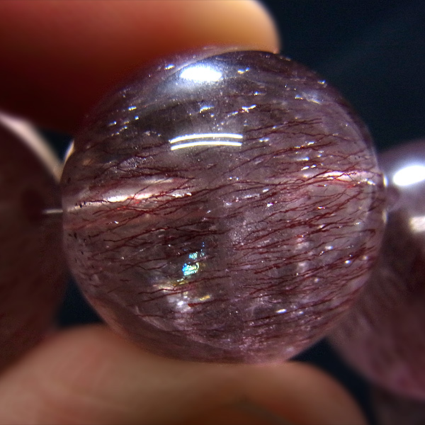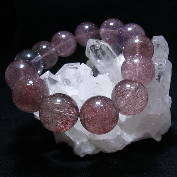 水晶の内部に赤紫の針状鉱物が内包されているものを「パープルルチル」と呼ばれてはいますが、実は内包物はルチルではありません。ゲーサイトやレピドクロサイト鉱物が針状にびっしり入っているものだけが「パープルルチル」と名乗ることができる、非常にレアで貴重な石なのです。希少価値が大変高くあまり市場に出回っていないストーンの一つです。エレスチャルアメジストやスーパーセブンとは全く違う種類のストーンです。