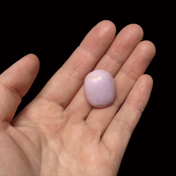 淡い紫色…ピンクから紫に変化していく途中の色、と表現した方がしっくりくるような色味です。硬度は比較的低く劈開性(へきかいせい)があります。