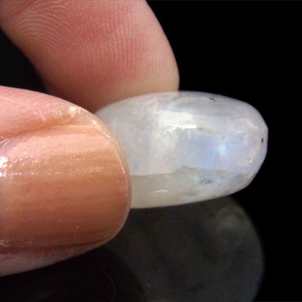 光のあたり具合で、綺麗なブルーやホワイトが見えるとても優しい色のムーンストーンです。