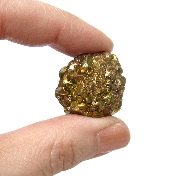 白銅鉱であるマーカサイトに含まれる銅分が酸化して、グリーンやレッドの金属光沢が浮かぶ、とても神秘的なストーンです。