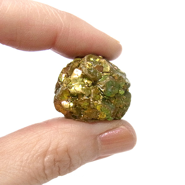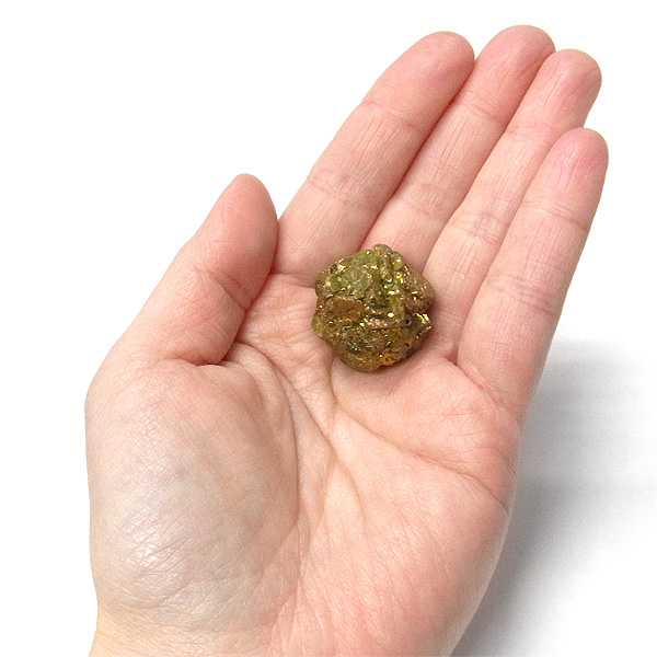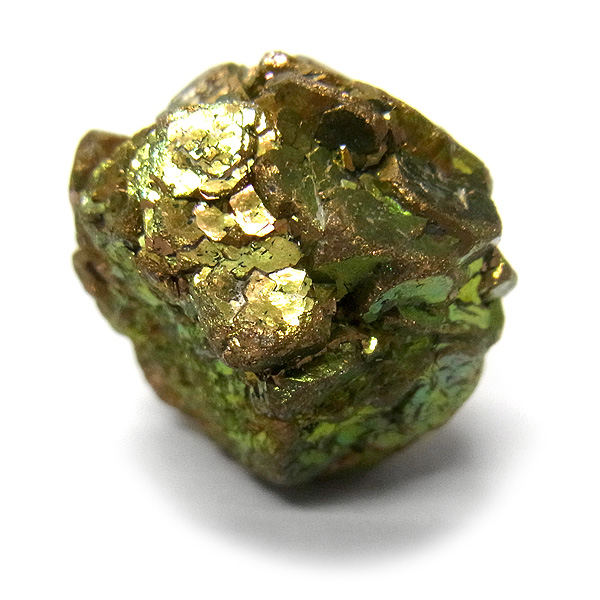 白銅鉱であるマーカサイトに含まれる銅分が酸化して、グリーンやレッドの金属光沢が浮かぶ、とても神秘的なストーンです。