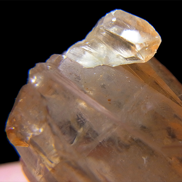 表面は美しいオレンジ色ですが中身は透明な水晶です。