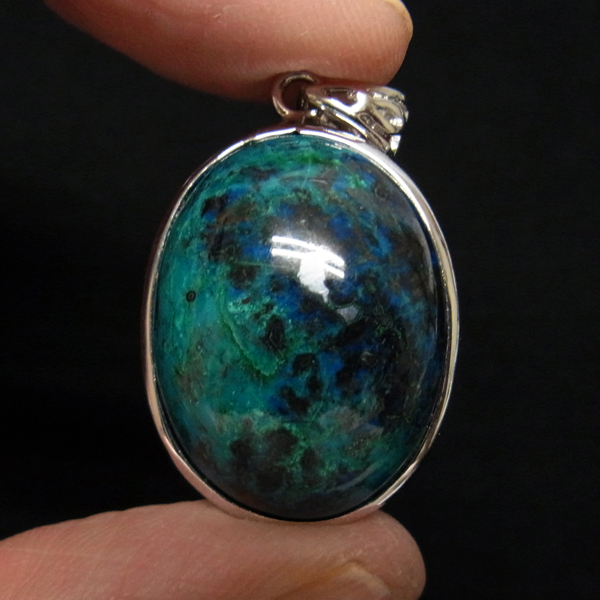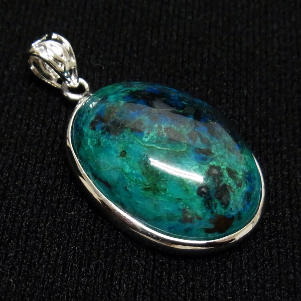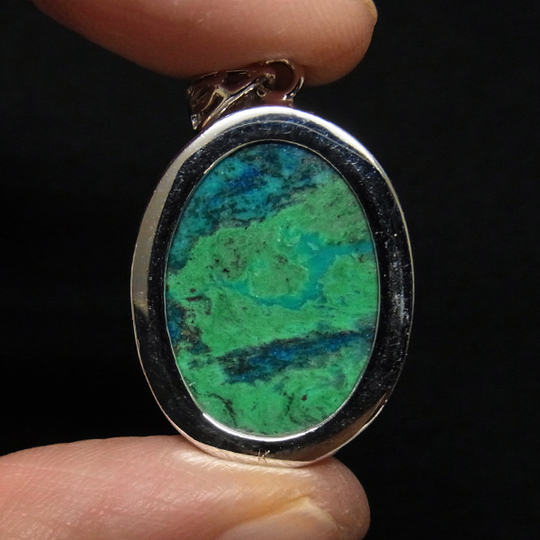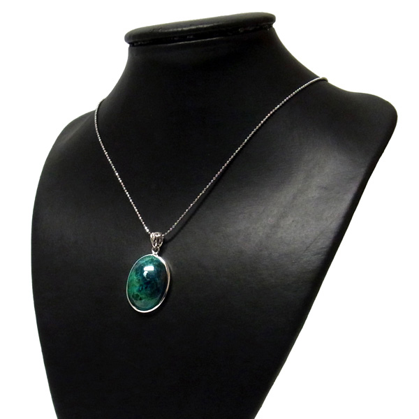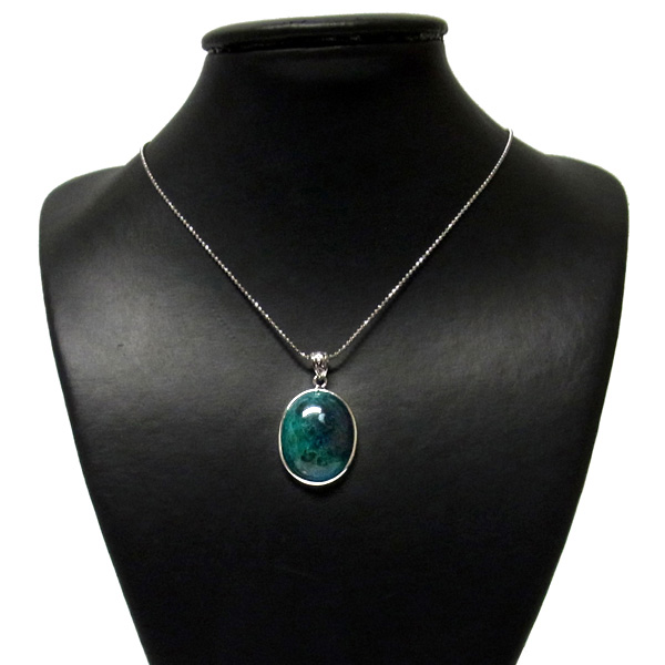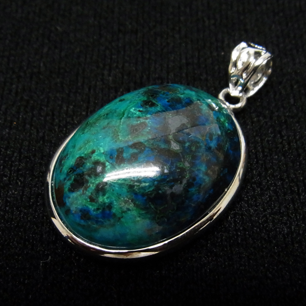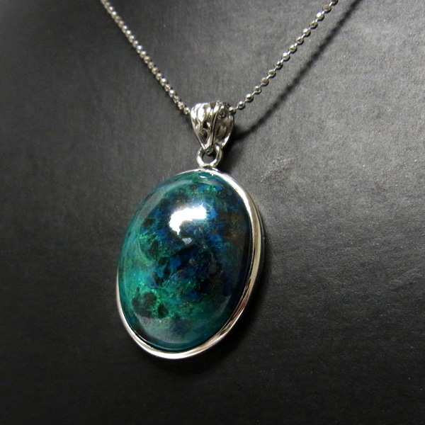 天然のクリソコラならでは独特のグリーンブルーが特徴的。絵画のような色使いで、気品のあるペンダントトップです。