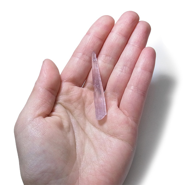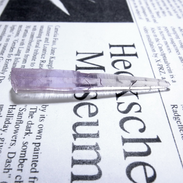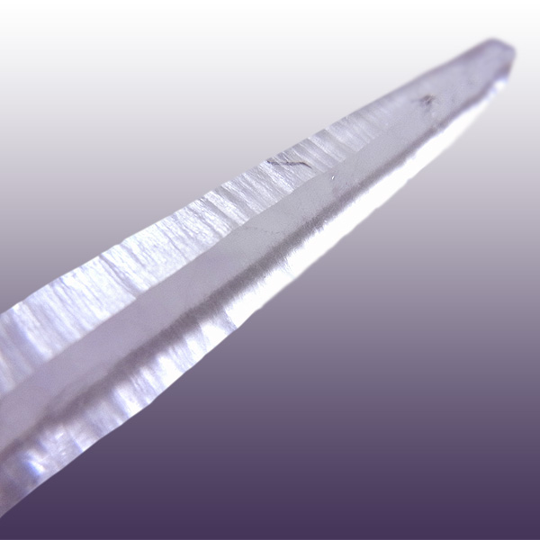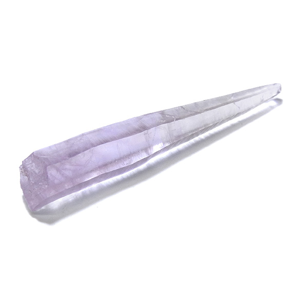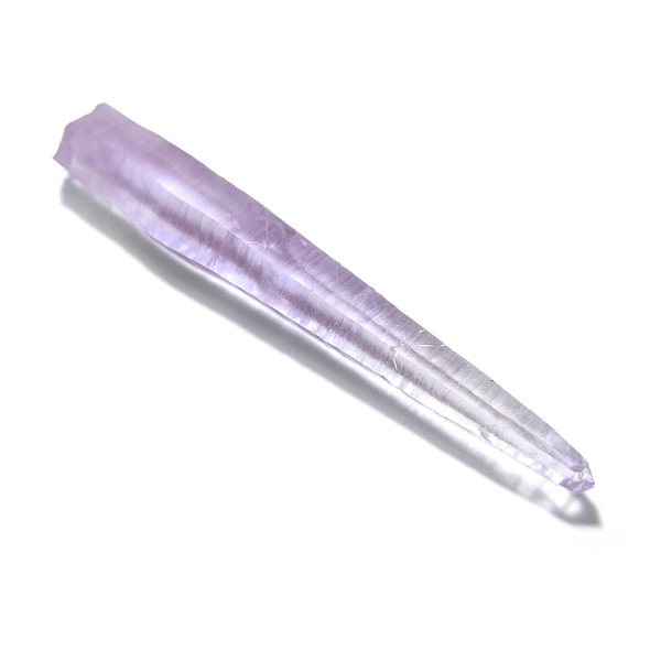 形の良いレーザー型のポイントで、先細りのニードルクォーツに、淡いラベンダーカラーが美しいく、魅了されます。