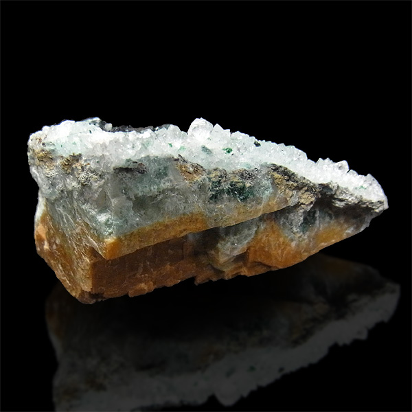 青い部分がクリソコラ、青の半透明の部分がジェムシリカ、その上の無色透明の部分が水晶なのです。