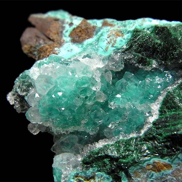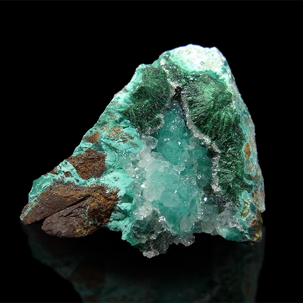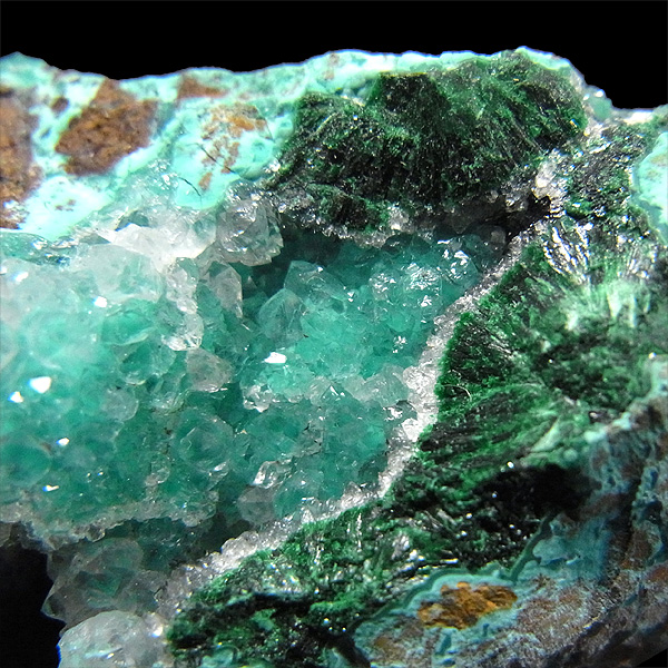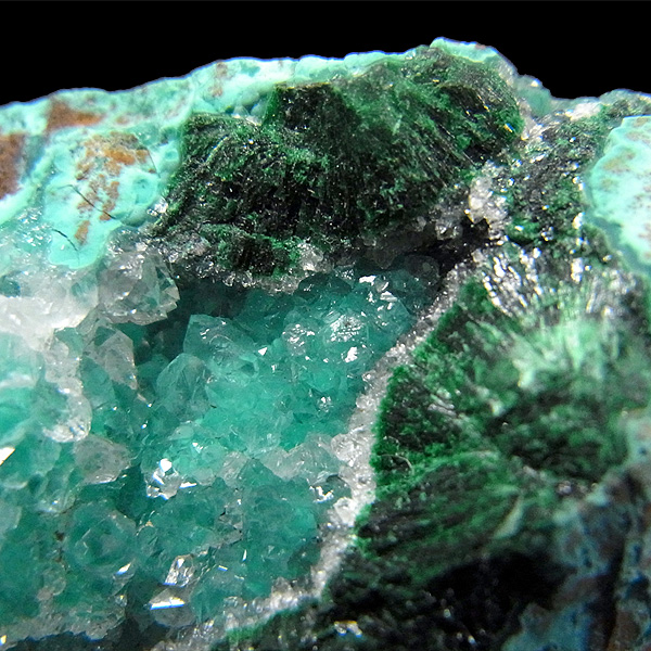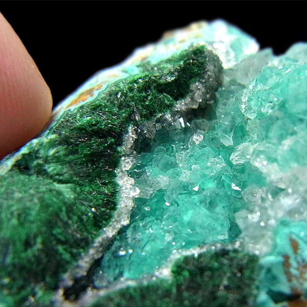 青い部分がクリソコラ、青の半透明の部分がジェムシリカ、その上の無色透明の部分が水晶なのです。