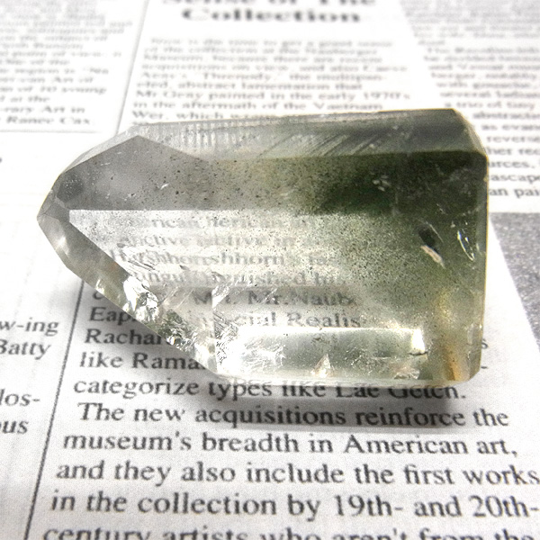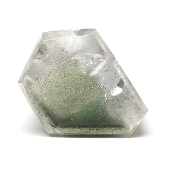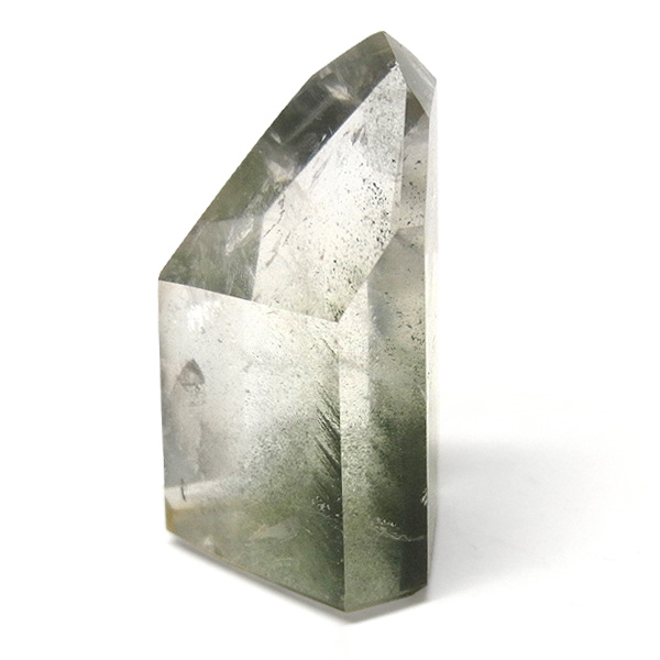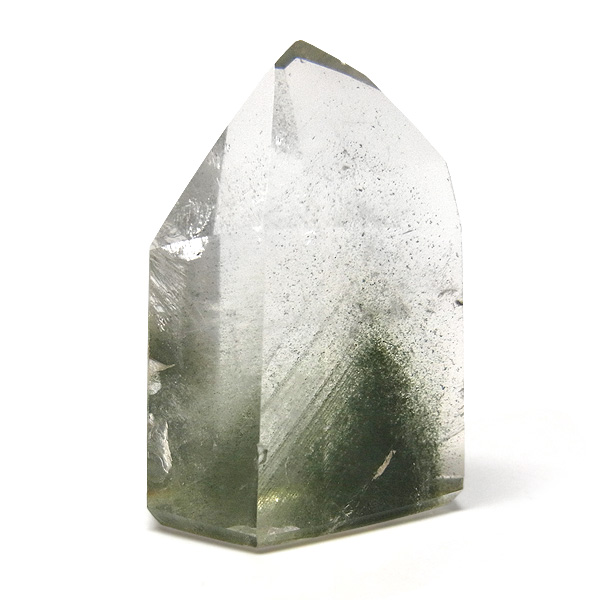 ファントムクォーツは、ガーデンクォーツの一種で、水晶が成長していく過程で、水晶の成長が一時的に停止した際に、その表面に別の鉱物などが付着し、また水晶が再び成長を始めると結晶の中に斜めや三角、山型の模様ができます。