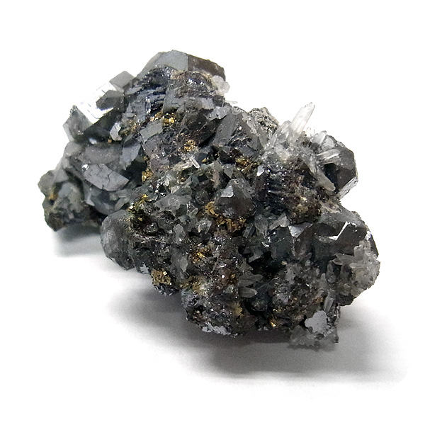 キラキラと深い輝きを放つガレーナの中に、雪のようにクォーツが乗っており、所々に不思議な光を放つパイライトが見られます。