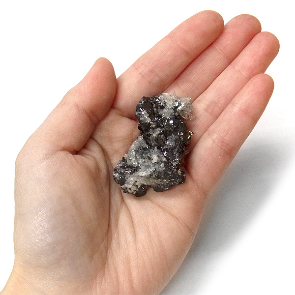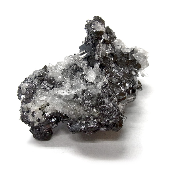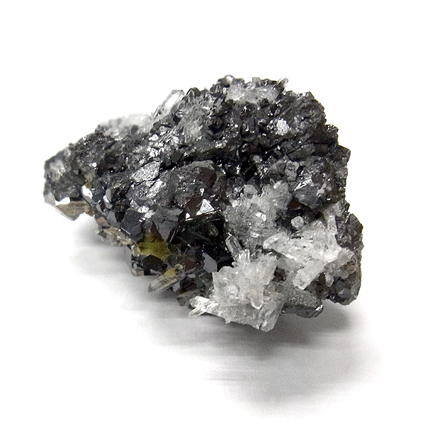 キラキラと深い輝きを放つガレーナの中に、ニードル状のにクォーツが随所に乗っており、所々に不思議な光を放つパイライトが見られます。
