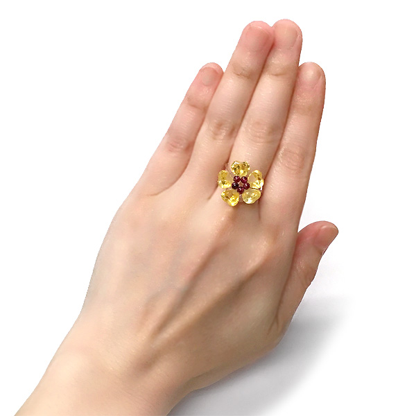 ジルコニア 花形リング(指輪) イエロー 13号