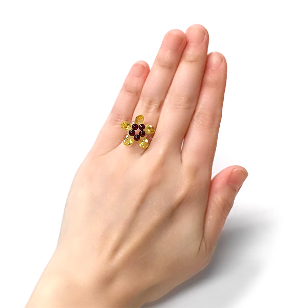 ダイヤモンドの代用石として使われるジルコニアには、透明・白・赤・黄・緑など、いろいろな色がありますが、どれもウラニウムを含んだ珍しい石です。可愛い小さな花形になっており、気分を変えたいときなど、ちょっとしたアクセントになります。