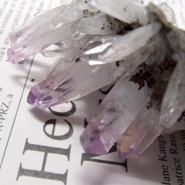 ブラジル産やウルグアイ産などのアメジストとは異なり、ポイントが細長く形成されるのが特徴です。