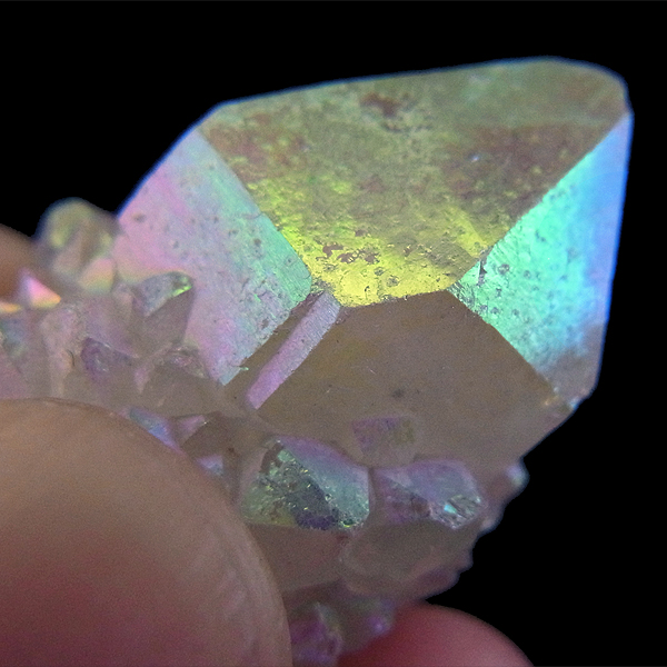 その上にオパールオーラ・ホワイトオーラと呼ばれる銀を蒸着させた美しい光沢を纏っています。