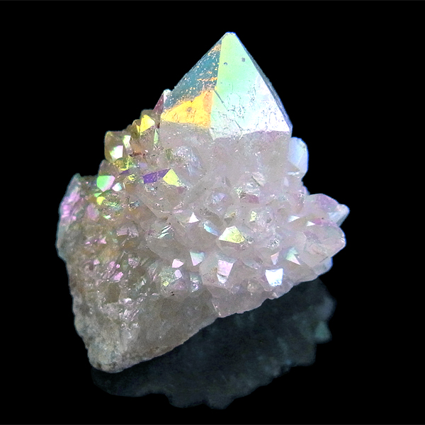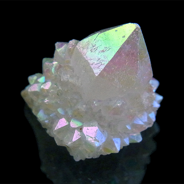 その上にオパールオーラ・ホワイトオーラと呼ばれる銀を蒸着させた美しい光沢を纏っています。