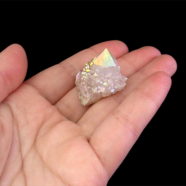 細かな淡い結晶で形成されており、光を当てるとキラキラと神秘的な輝きを放ちます。