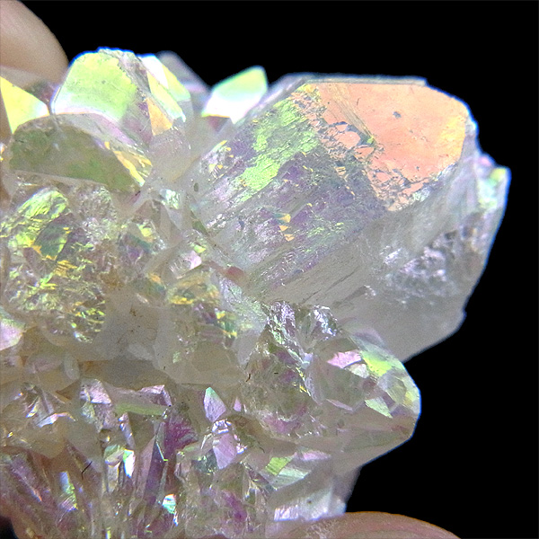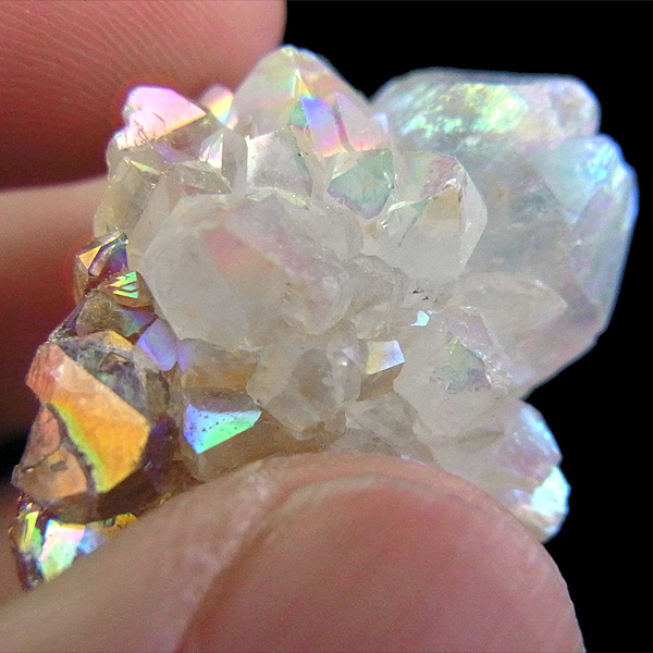 その上にオパールオーラ・ホワイトオーラと呼ばれる銀を蒸着させた美しい光沢を纏っています。