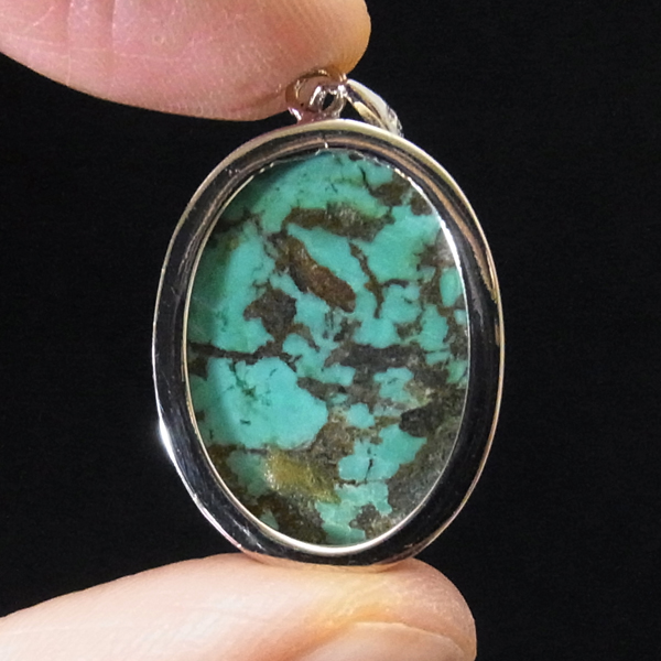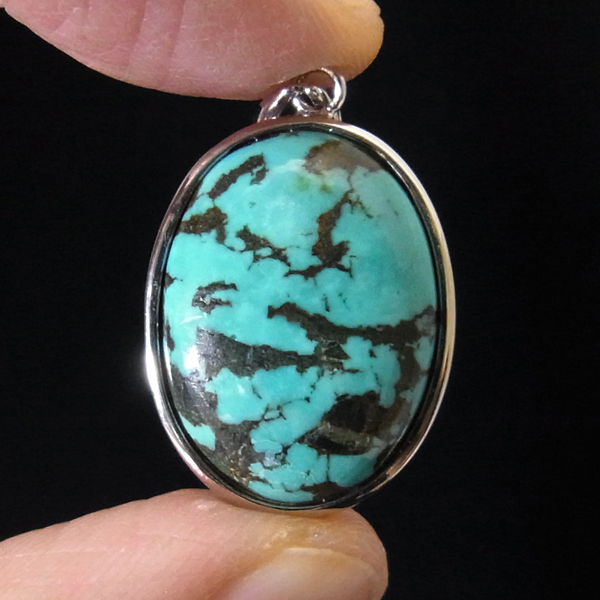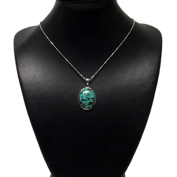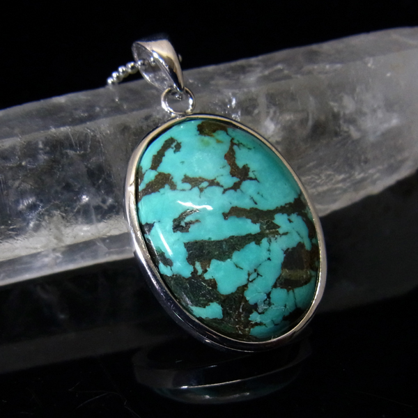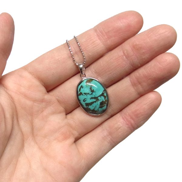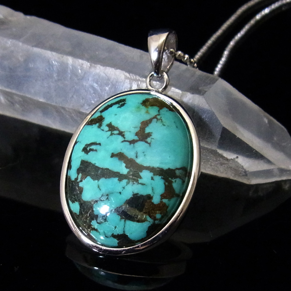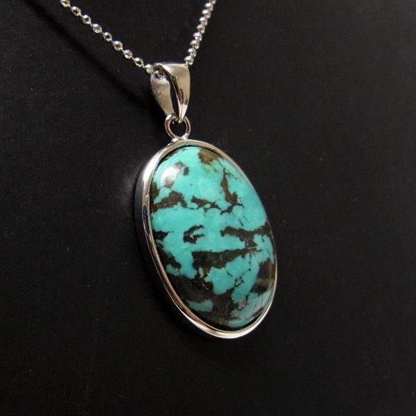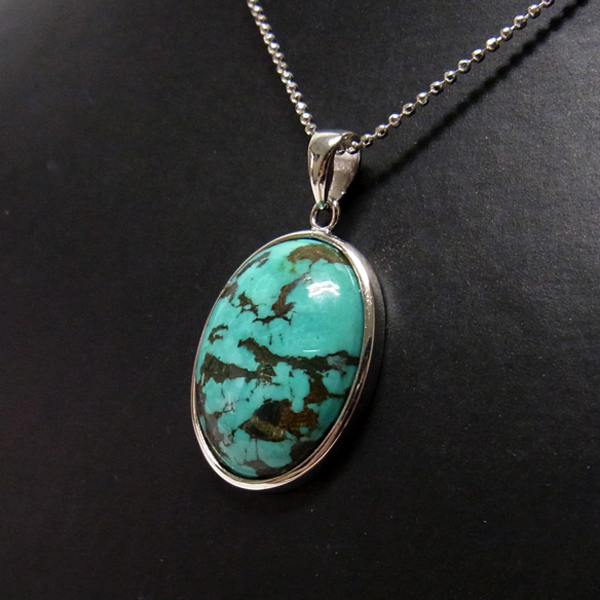 ターコイズを使用したペンダントトップです。美しい紋様が目を引くターコイズのペンダントトップで、天然石特有の自然が創り出した芸術です。贅沢に大き目のターコイズを使用しており、ペンダントトップとして存在感は抜群。ターコイズは魔除けの意味合いがあり、アクセサリーとしてとても人気が高いアイテムです。