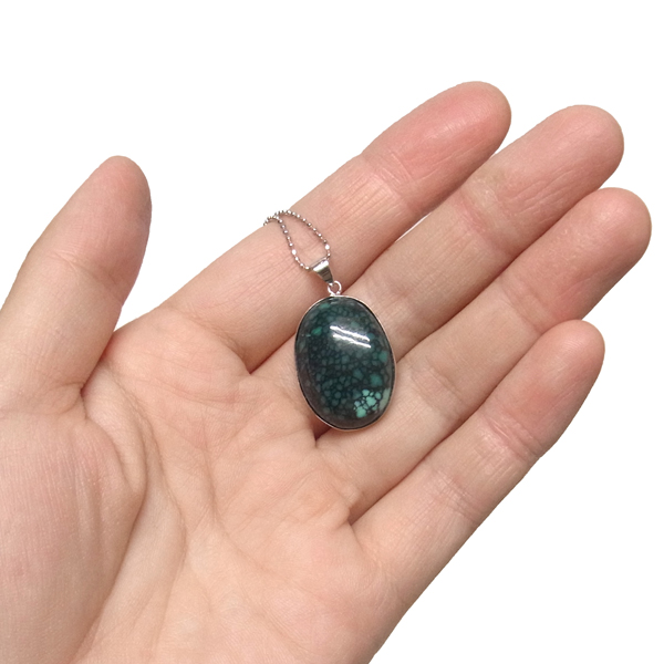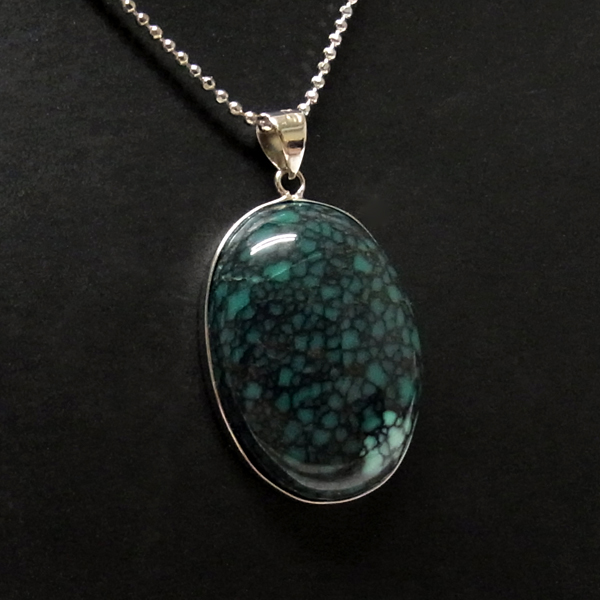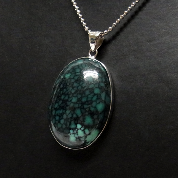 美しい紋様が目を引くターコイズのペンダントトップで、天然石特有の自然が創り出した芸術です。贅沢に大き目のターコイズを使用しており、ペンダントトップとして存在感は抜群。ターコイズは魔除けの意味合いがあり、アクセサリーとしてとても人気が高いアイテムです。