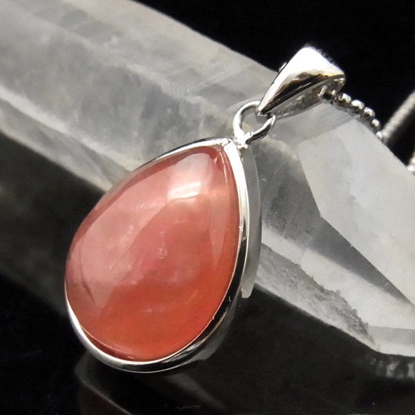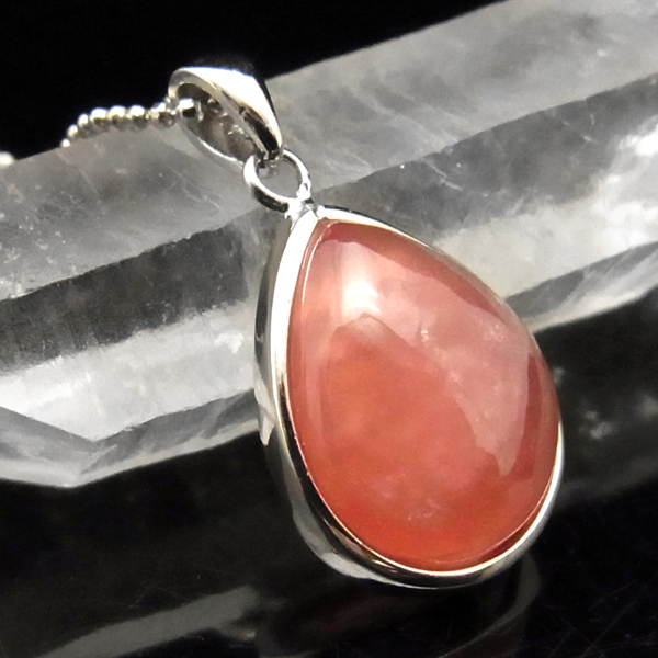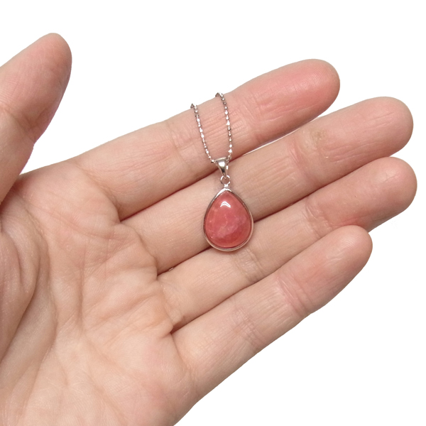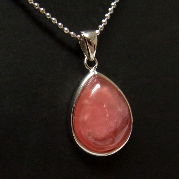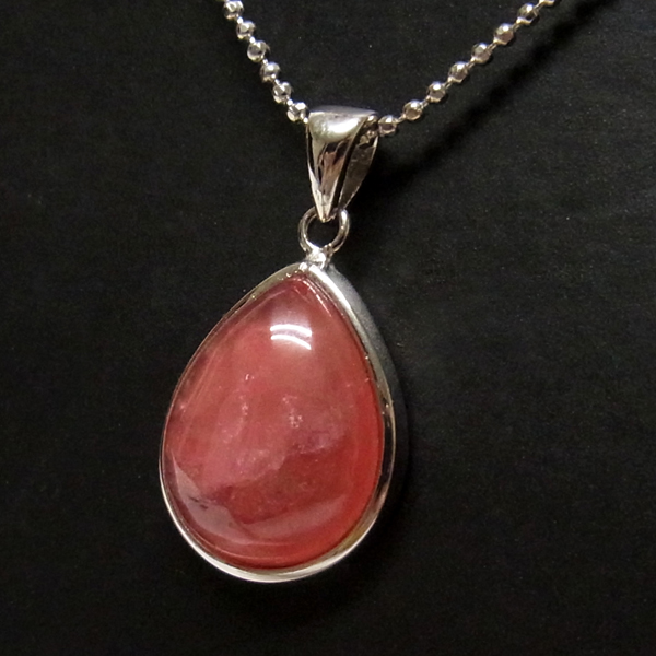 アルゼンチン産の高品質インカローズのペンダントトップです。天然のインカローズをカボション しずく型のペンダントトップに加工しています。クラックや縞模様などのない、透明感のあるインカローズの色の濃い部分のみを贅沢に使用しています。