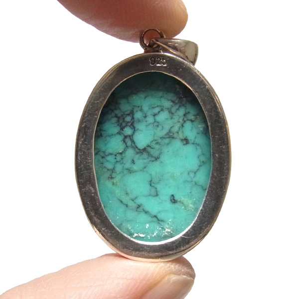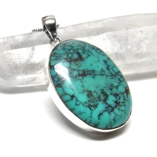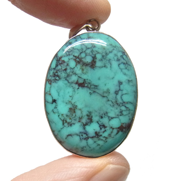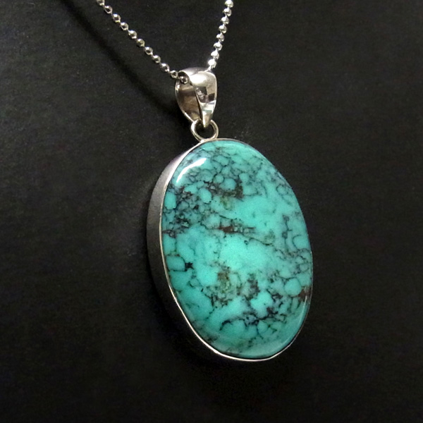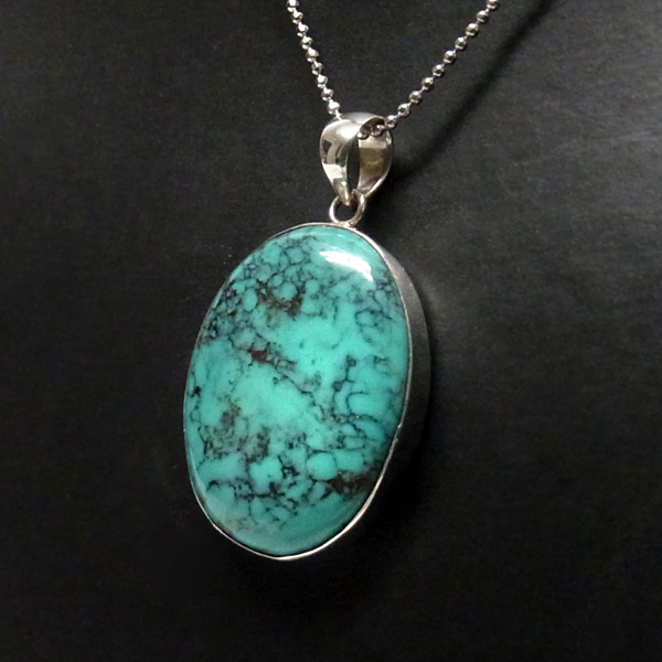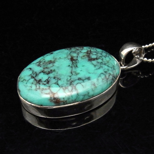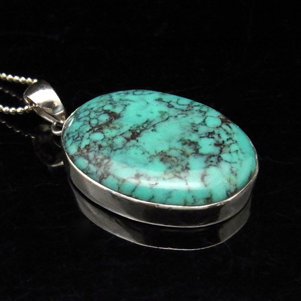ターコイズを使用したペンダントトップです。美しい紋様が目を引くターコイズのペンダントトップで、天然石特有の自然が創り出した芸術です。贅沢に大き目のターコイズを使用しており、ペンダントトップとして存在感は抜群。ターコイズは魔除けの意味合いがあり、アクセサリーとしてとても人気が高いアイテムです。
