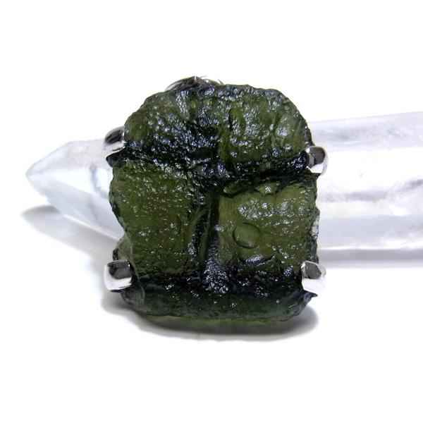 モルダバイトは数ある石の中でも最高のヒーリングストーンの一つとされています。孤独感や悲しみを癒し、生命力と調和力を高め、ポジティブな気持ちにさせてくれます。古くから神聖な石として用いられ、300年程前のヨーロッパでは愛の証として恋人に送り、幸せを誓い合ったといわれています。また、洞察力と感受性を高め、永遠の理想を実現するように働きかけてくれるといわれています。