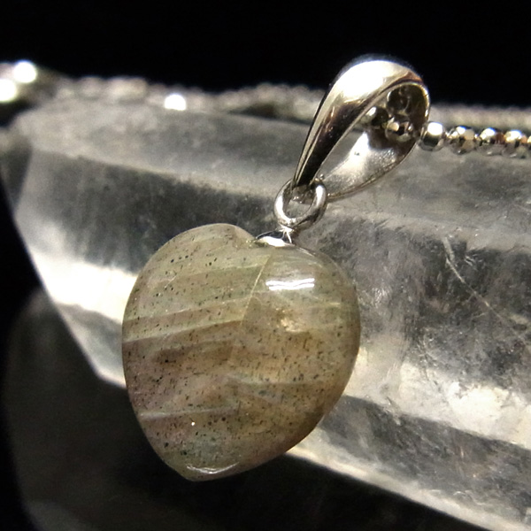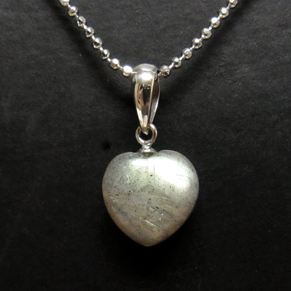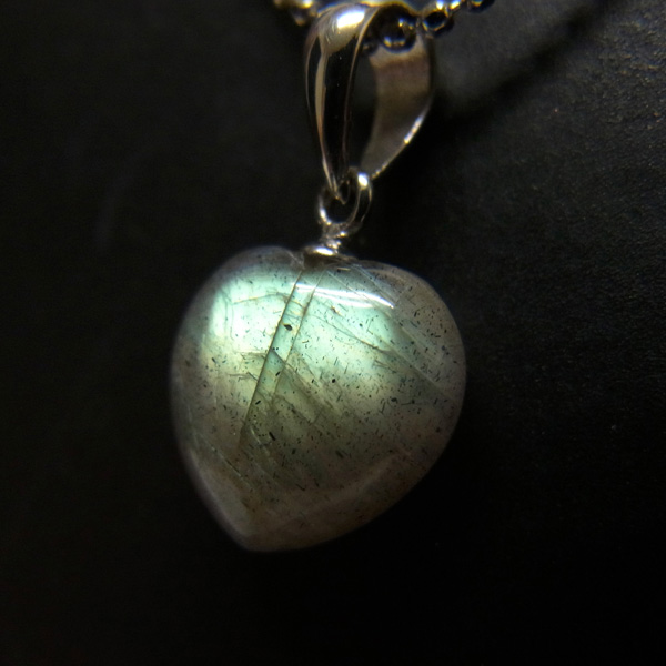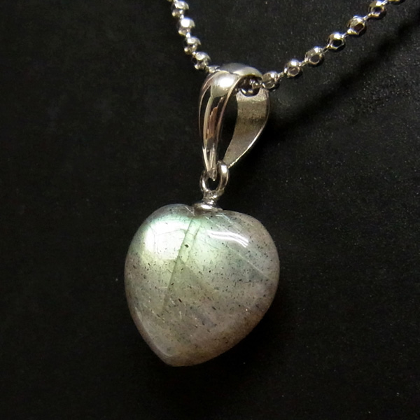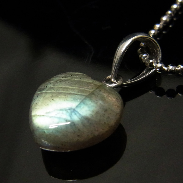 神秘的な輝き!ラブラドライトのハート型ペンダントトップです。