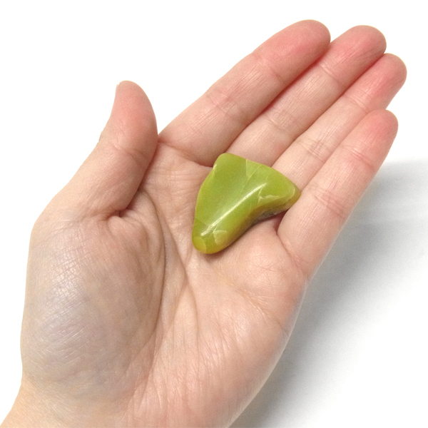 ワシントンサーペンティン(ヒーラーライト)は、明るいライムグリーン色をしており、やわらかな感触があります。パッと見た感じは黄色の印象が強いと思いますが、良く見てみると黄色ではなくもっと複雑で独特の色合いをしていることが分かります。