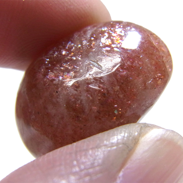 サンストーンという名前は鉱物的な性質から名づけられたものではなく、ムーンストーンの静かな光と対照的に思えるキラキラした光を持つことから名づけられた、宝石としての名称です。