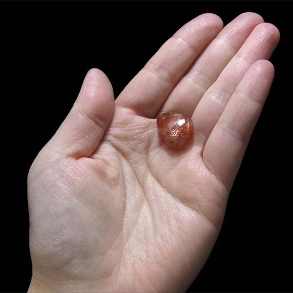 サンストーンと言う名前は鉱物的な性質から名づけられ たものではなく、ムーンストーンの静かな光と対照的 に思えるキラキラした光を持つことから名づけられ た、宝石としての名称です。