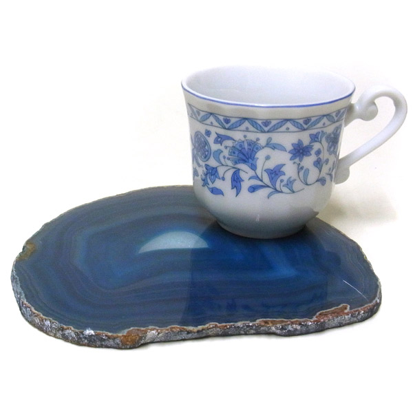 染色することにより、色の濃淡ができ、メノウの縞模様がより一層美しくなります。置物を置いたり、鉱物を置いたりのインテリアとしてや、グラスなどを置くコースターとしてもお楽しみ頂けます。