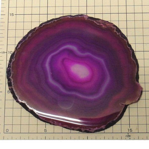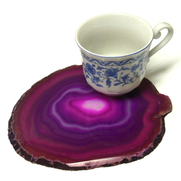 染色することにより、色の濃淡ができ、メノウの縞模様がより一層美しくなります。置物を置いたり、鉱物を置いたりのインテリアとしてや、グラスなどを置くコースターとしてもお楽しみ頂けます。