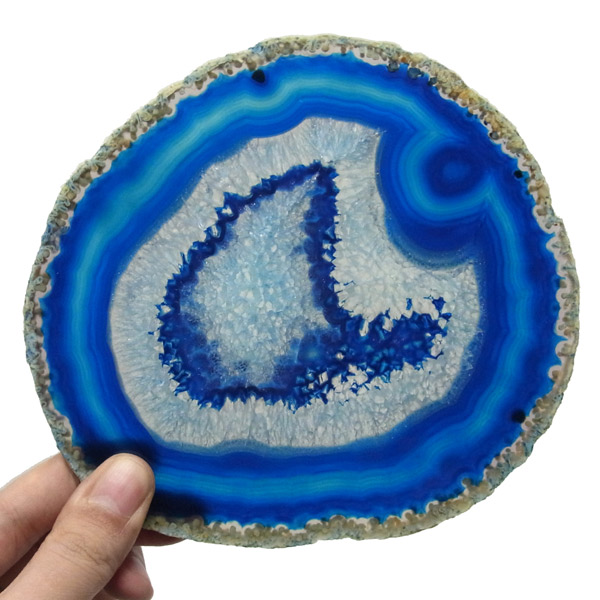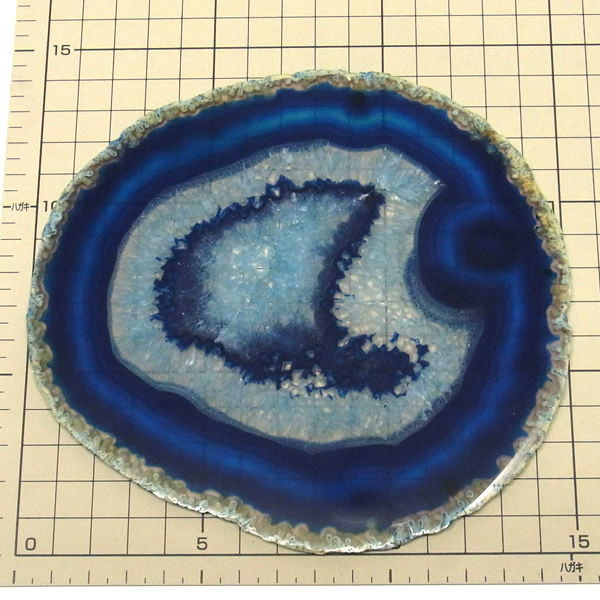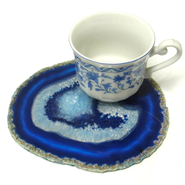 染色することにより、色の濃淡ができ、メノウの縞模様がより一層美しくなります。置物を置いたり、鉱物を置いたりのインテリアとしてや、グラスなどを置くコースターとしてもお楽しみ頂けます。
