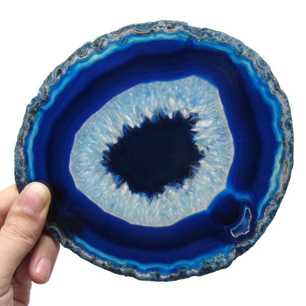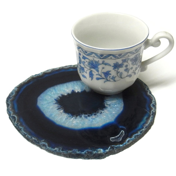 染色することにより、色の濃淡ができ、メノウの縞模様がより一層美しくなります。置物を置いたり、鉱物を置いたりのインテリアとしてや、グラスなどを置くコースターとしてもお楽しみ頂けます。