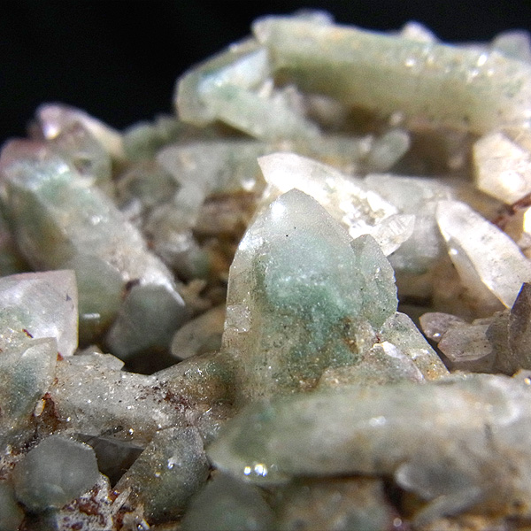 ピンク色の水晶といえばローズクォーツが有名ですが、それとは別で土壌に含まれる赤褐色をした酸化鉄により表面や母岩部がピンク色になっています。
